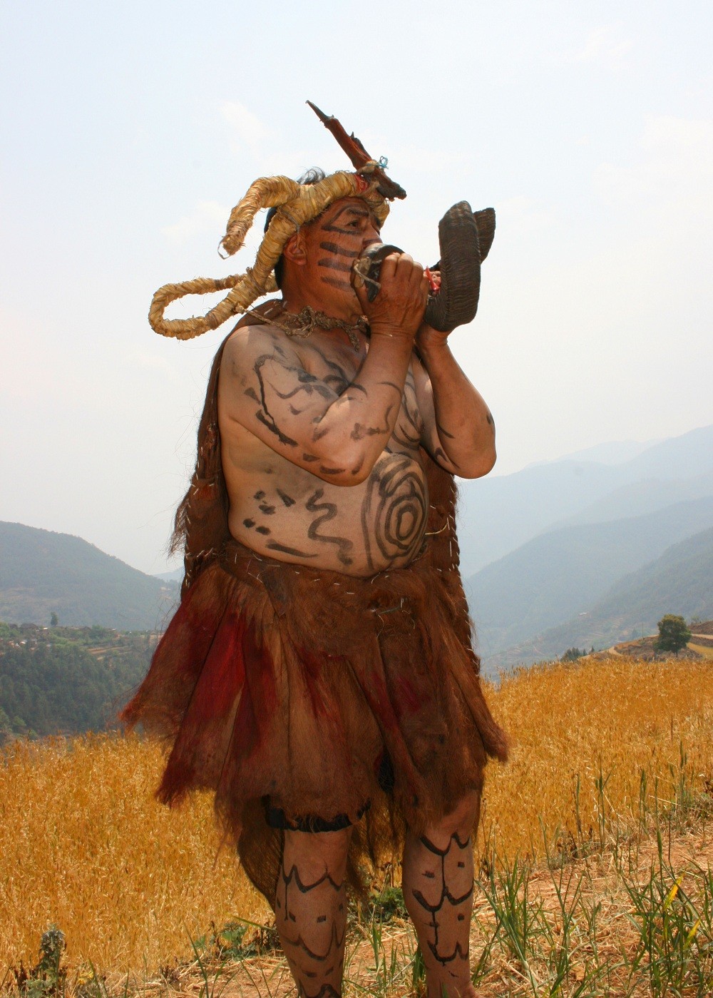 哀牢山彝族崇虎尚黑,把每年正月的第一个属虎日作为吉祥日,认为这一天是虎神降临人间、踢福人间的好日子,并认为以虎为首的十二兽是人间的保护神,能给人间带来安康与幸福,在虎日的这一天过一年一度的兽神祭祀节,跳古老的十二兽舞。彝族青年男女裸身配纹、披戴兽皮棕衣,装扮成各种兽类的形态,在毕摩的主持和鼓号手的引领下,模仿人类耕种、收割、纺麻、织布、打荞、抖谷等生产劳作动作,依次进行“接兽神”、“祭兽神”、“跳兽舞”、“送兽神”等活动。