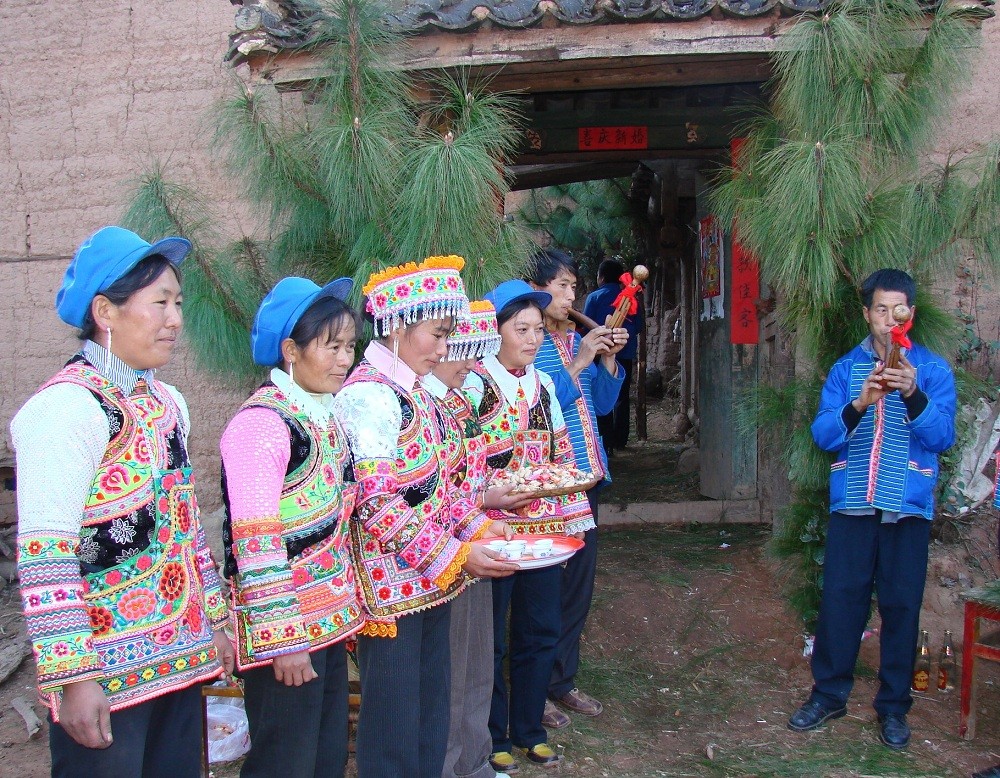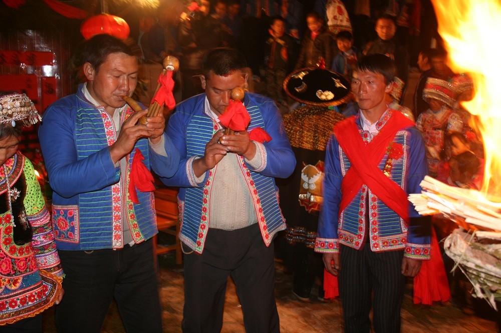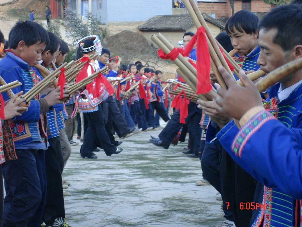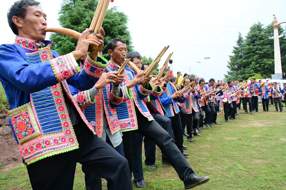 葫芦笙舞主要流传于楚雄彝族聚居地区,是一种由彝族图腾崇拜发展而来的传统歌舞艺术,它保留了原始古朴的艺术特点。葫芦笙舞多以男子吹奏葫芦笙来领舞,根据内容变化节奏,妇女则在外围携手上下甩动,踏步作伴舞,舞者人数不限。舞蹈以走步、跺步、勾膝、折腿、转体、倾身和身段的俯、仰、摆、转等为主要动作特点。葫芦笙舞的舞蹈动作大多取材于劳动、生产动作及动物形态,以歌、乐、舞三位一体的形式融合了彝族民间诸多传统文化习俗,成为彝族人民反映生产、生活,表达思想感情的重要载体并世代传承。2017年被云南省人民政府公布为省级非物质文化遗产代表性项目。