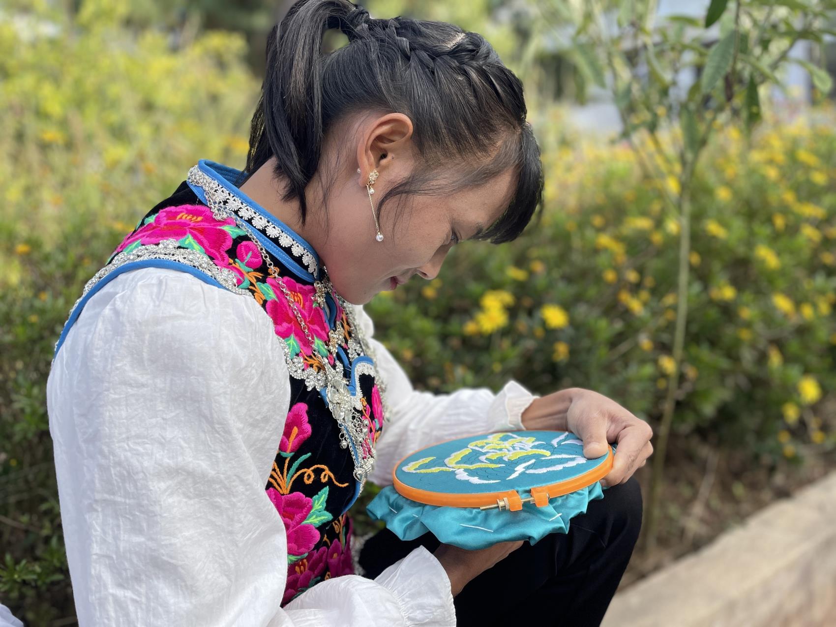 在实际操作环节,绣娘们穿针引线,一针一线绣下自己的作品,细腻的动作、精准的针法,无不展现出她们精湛的技艺和彝族传统刺绣艺术之美。授课老师穿梭在绣娘中间,不时地给予指导和鼓励,让绣娘们在实践中不断提高自己的技艺水平。